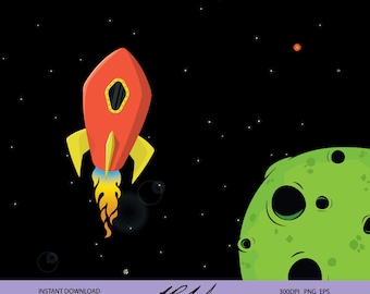 Items similar to Yellow Rocket Ship Digital Clip Art ... from img1.etsystatic.com