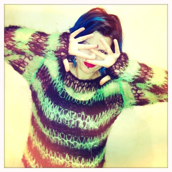 Seditionaries Mohair : Punk Mohair Jumper Black White Sweater Stripe Seditionaries Salem Beetlejuice.